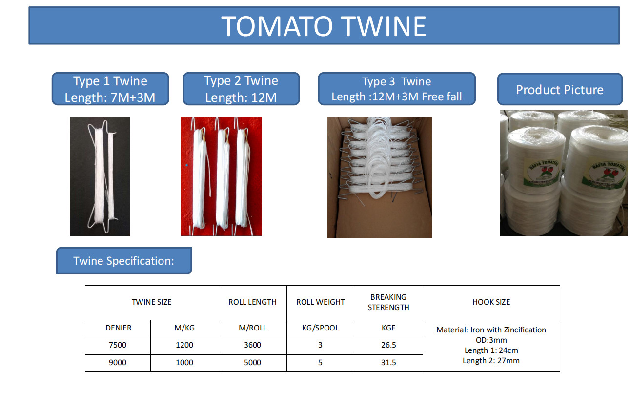 Ο σπάγγος θερμοκηπίων γίνεται από το υλικό πολυπροπυλενίου 100%. Στα θερμοκήπια οι κλιματολογικοί όροι είναι κατάλληλοι για τις συγκομιδές που φυτεύονται, έτσι ο σπάγγος θερμοκηπίων σχεδιάζεται για να αντισταθεί & να αποδώσει σε οποιουσδήποτε κλιματολογικούς όρους.